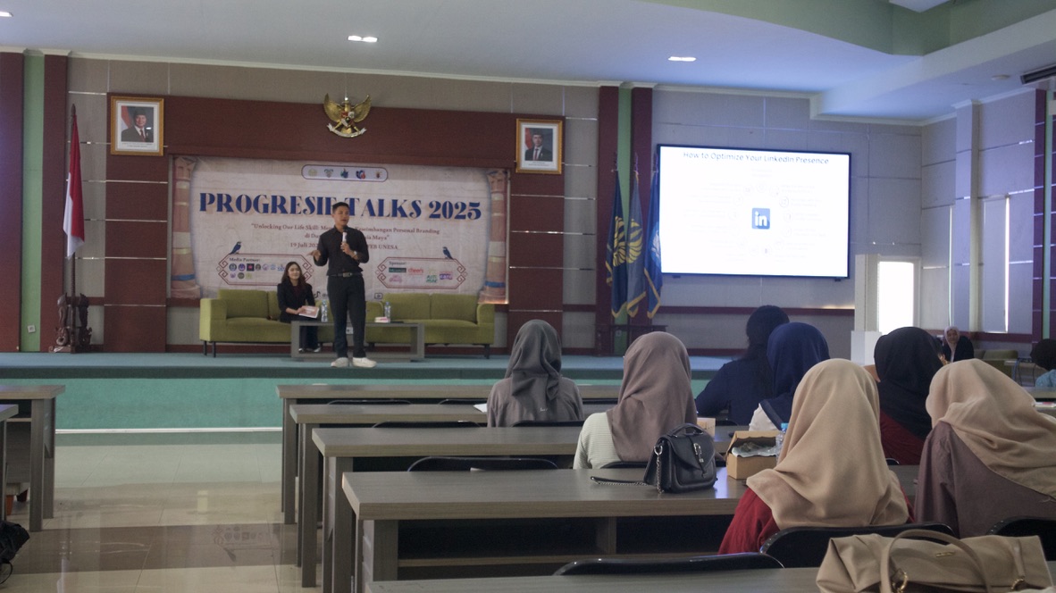 Progresif Talks adalah sebuah seminar yang dirancang untuk membantu mahasiswa dalam mengembangkan keterampilan hidup (life skill) yang autentik di era modern. Kegiatan ini bertujuan untuk menciptakan individu mahasiswa yang percaya diri, kredibel, dan mampu memberikan kontribusi positif dalam karir dan orang sekitarnya. Di masa mendatang, seorang individu yang mampu berkomunikasi secara efektif akan lebih mudah membangun jaringan, menyampaikan pendapat secara rasional, serta meningkatkan peluang untuk diterima di lingkungan kerja. Kegiatan Progresif Talks dilaksanakan pada hari Sabtu, 19 Juli 2025 secara offline dan bertempat di auditorium gedung G6 FEB UNESA. Dengan mengusung tema “Unlocking Our Life Skill : Membangun Keseimbangan Personal Branding di Dunia Nyata dan Dunia Maya”, Progresif Talks dihadiri oleh 127 peserta yang terdiri dari 100 peserta internal Unesa dan 27 peserta eksternal Unesa.